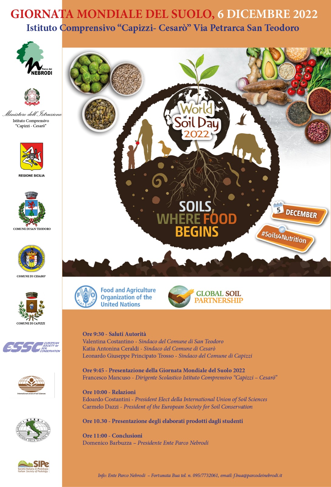 More than 100 participants from any parts of Italy, including soil scientists, students, teachers, local and national administrators, celebrated "the importance of soil as a critical component of the natural system and as a vital contributor to the human commonwealth through its contribution to food, water and energy security and as a mitigator of biodiversity loss and climate change", as proposed during the 17th World Congress of the International Union of Soil Science in Bangkok, 2002.