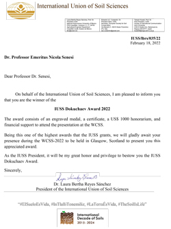 con grande piacere e soddisfazione ricevo dal dott. Marcello Pagliai la comunicazione che il prof. Nicola Senesi, Presidente della SISS , è stato nominato IUSS Honorary Members nel recente IUSS Council Meeting che si è tenuto in Jeju, Korea. Il prof. Senesi è il secondo ricercatore italiano a ricevere questo autorevole riconoscimento a livello mondiale dopo il prof. Fiorenzo Mancini nel 1968.